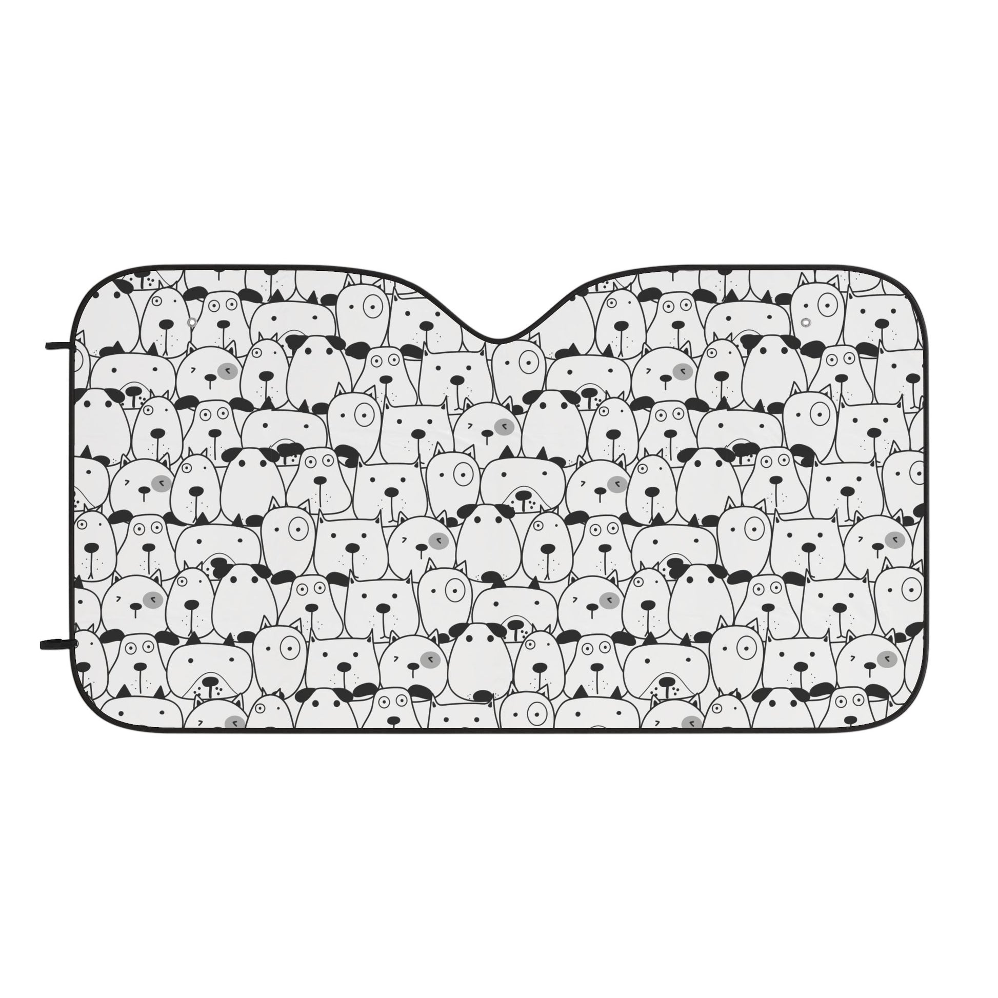 Cartoon Bear Pattern Car Sunshade — Cute Black & White Front Windshield Shade