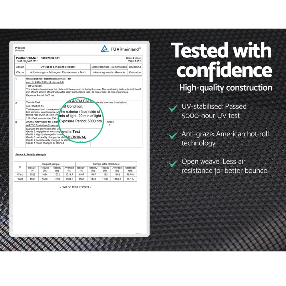 Let your kids bounce to their hearts' content with our 4.5ft Mini Trampoline. Recommended for children aged 3 to 8 years with a maximum weight capacity of 25kg, the modest footprint of the trampoline makes it perfect for smaller houses and townhouses with limited backyard space. With its superior bounce characteristics featuring 30 heavy-duty elastic ropes, the trampoline is small in size but big on safety to enable safe and durable bouncing with no worries. The heavy-gauge galvanised steel framework is designed to handle all robust play and the anti-graze mat is UV-tested for quality and reliability. Other great features include UV-stabilised padding, foam-wrapped posts and safety netting with zipped entry. So jump to it and order our trampoline today.