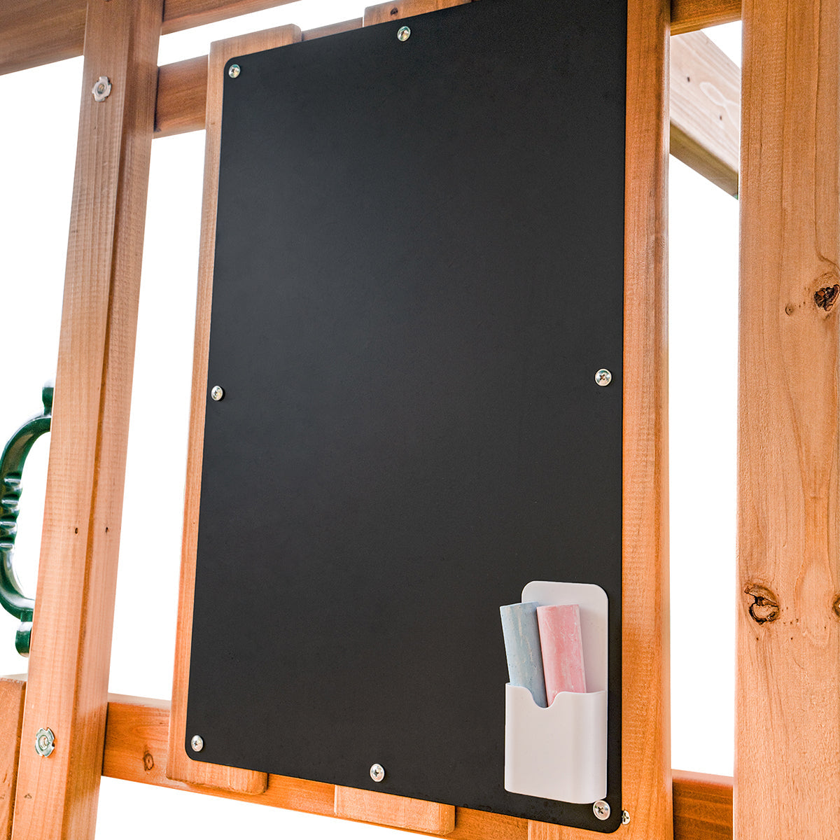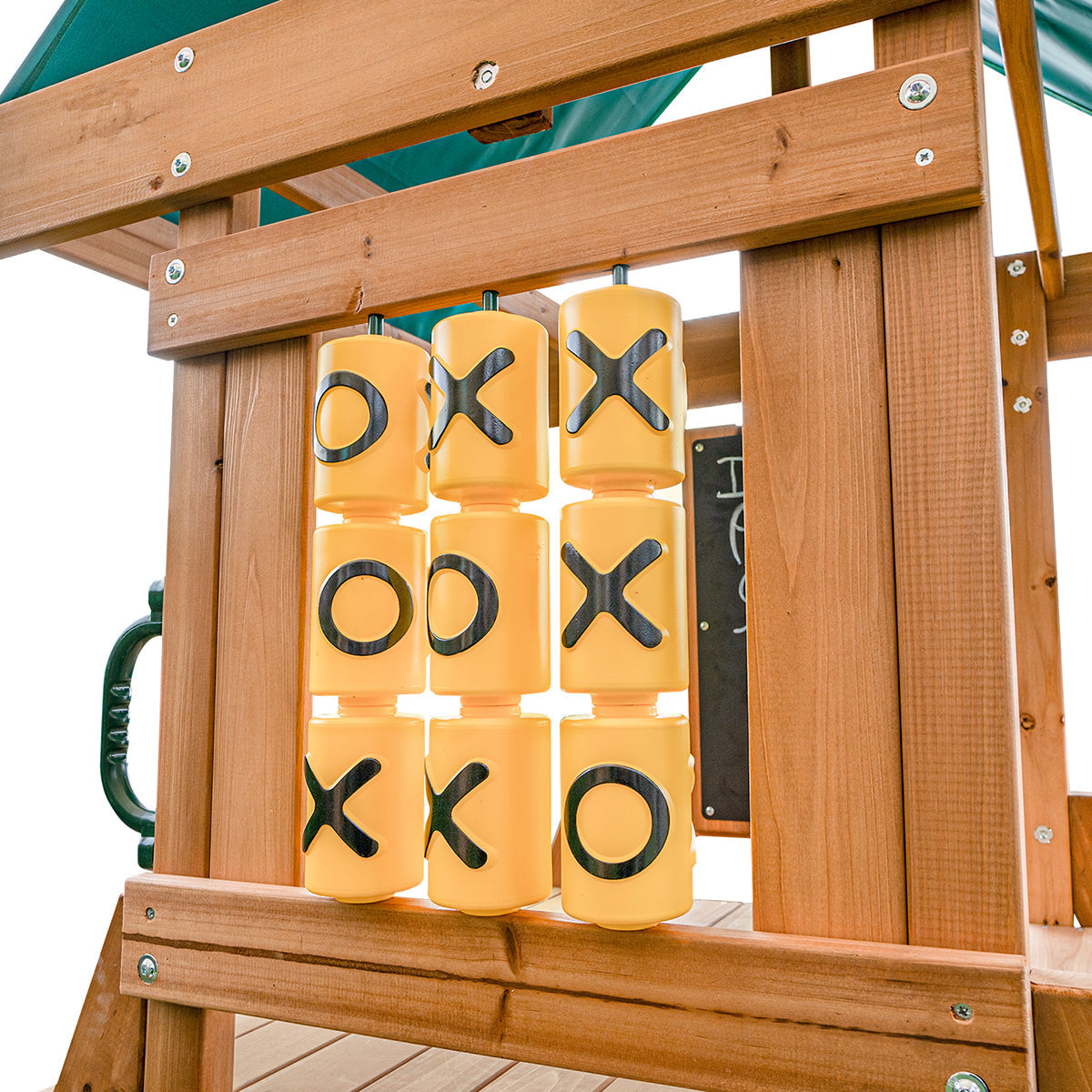- 120cm high raised playhouse with noughts crosses, telescope chalkboard