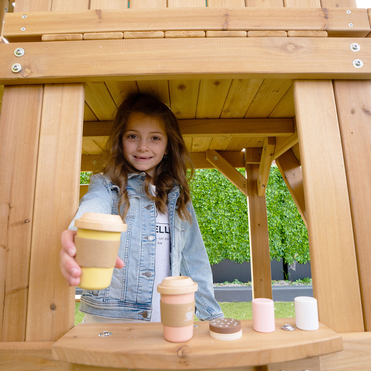 - 119cm high raised playhouses with viewing window