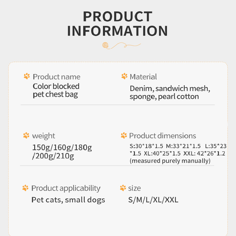This colour-blocked pet chest bag is the perfect solution for pet owners who hate leaving their companions behind. The carrier is constructed from a blend of durable canvas and soft mesh, striking the right balance between sturdiness and comfort. The ergonomic design distributes the pet's weight evenly across your shoulders, reducing fatigue during longer trips. The elastic neck opening ensures your pet can look around and enjoy the scenery without feeling choked or restricted.